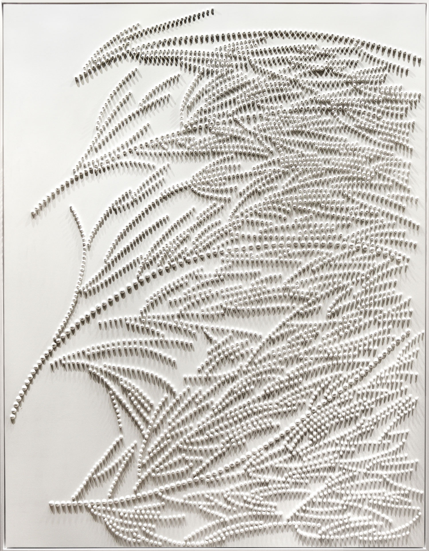 Jane Puylagarde started her education with two Master’s degrees, in Political Science and in Law, interspersed with a career in fashion modeling, which led her to starting her own ready-to-wear brand and becoming one of the promising young creators of the 1980’s. In the early 90’s, during a trip to Mexico, she had a decisive encounter with an Indian ceramist who painted small drops of paint forming circles. The miracle of the drops had just acted on Jane who, for years, appropriated this gesture and reinvented it by developing an art and a unique technique.