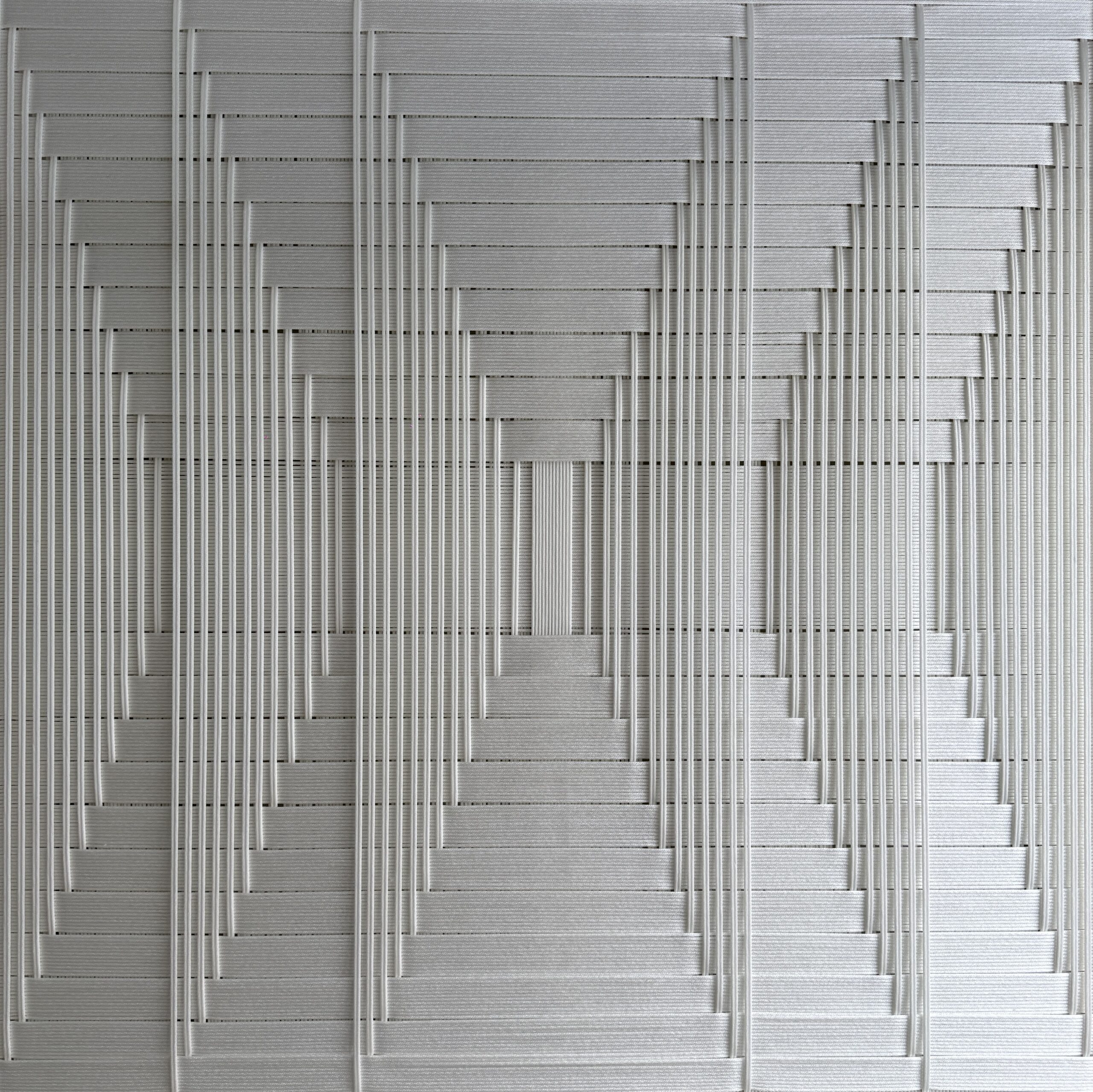 All “LINESCAPES” are handwoven panels of tactile textures that convey a variety of messages and emotions.This bold graphic world is created by grids and geometric structures, inspired by the aesthetics of